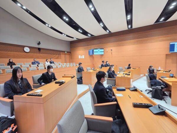 生徒会本部・総務委員 委員会(今年度総括、次年度に向けて)2026/02/03お知らせ学生生活1月28日(水) 柏原市役所内の議場をお借りして、生徒会本部・総務委員会を実施しました。 普段は入れない議場での会議という貴重な経験に、生徒たちも大変緊張しながらも、 強い関心と学びを得ることができました。 現職の柏原市議会議員が見学する中で堂々と話し合いました。 ご協力いただいた柏原市役所の皆様や市議会議員の皆様に、心より感謝申し上げます。 今後も地域と連携した学びを大切にしていきたいと思います。 前の記事へトピックス一覧へ トピックスカテゴリー すべてのトピックス お知らせ 学生生活 クラブ活動 入試情報 同窓会(藤蔭会) 2026年2月 月 火 水 木 金 土 日 1 2345678 9101112131415 16171819202122 232425262728 アーカイブス2026年2月(3)1月(14)2025年12月(27)11月(21)10月(14)9月(12)8月(29)7月(20)6月(103)5月(8)4月(19)3月(7)2月(4)1月(15)2024年12月(17)11月(21)10月(31)9月(7)8月(31)7月(32)6月(52)5月(24)4月(18)3月(11)2月(12)1月(17)2023年12月(29)11月(24)10月(17)9月(20)8月(33)7月(8)6月(35)5月(25)4月(18)3月(11)2月(15)1月(4)2022年12月(43)11月(27)10月(18)9月(9)8月(26)7月(21)6月(34)5月(16)4月(35)3月(18)2月(16)1月(4)2021年12月(31)11月(39)10月(23)9月(3)8月(33)7月(14)6月(7)5月(13)4月(8)3月(18)2月(2)1月(5)2020年12月(30)11月(12)10月(13)9月(5)8月(12)7月(2)6月(7)5月(14)4月(22)3月(6)2月(6)1月(7)2019年12月(5)11月(9)10月(8)9月(11)8月(5)7月(4)6月(17)5月(7)4月(5)3月(2)2月(3)1月(3)2018年12月(3)11月(3)10月(1)9月(4)8月(11)7月(3)6月(16)5月(10)4月(2)3月(1)2月(1)1月(2)2017年11月(3)
