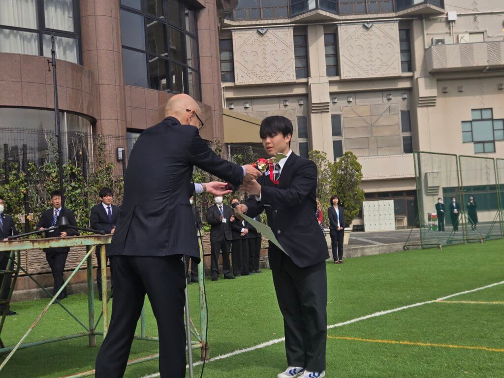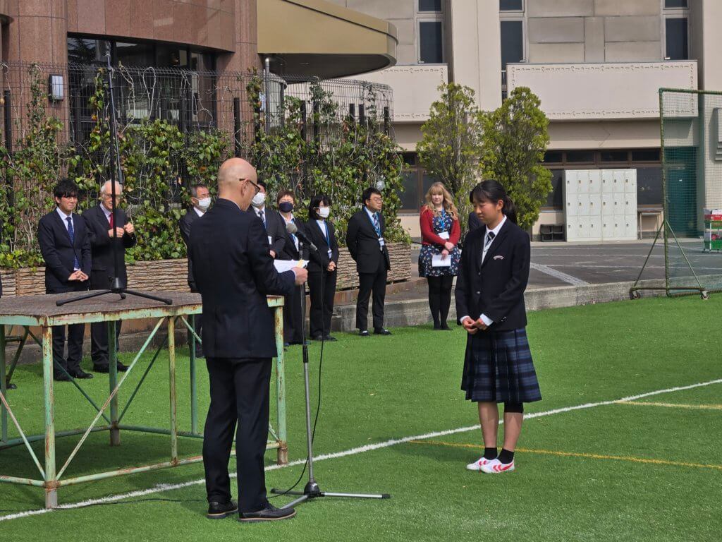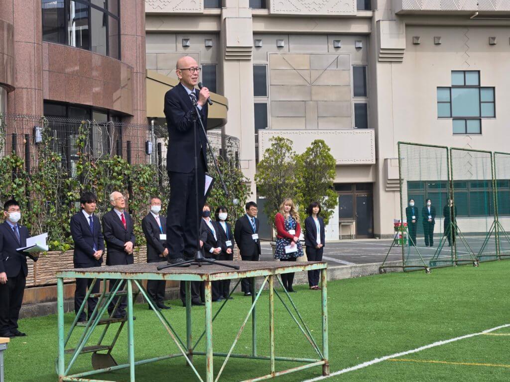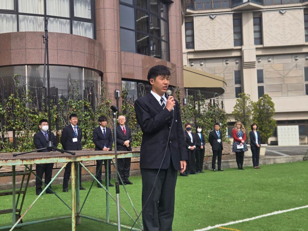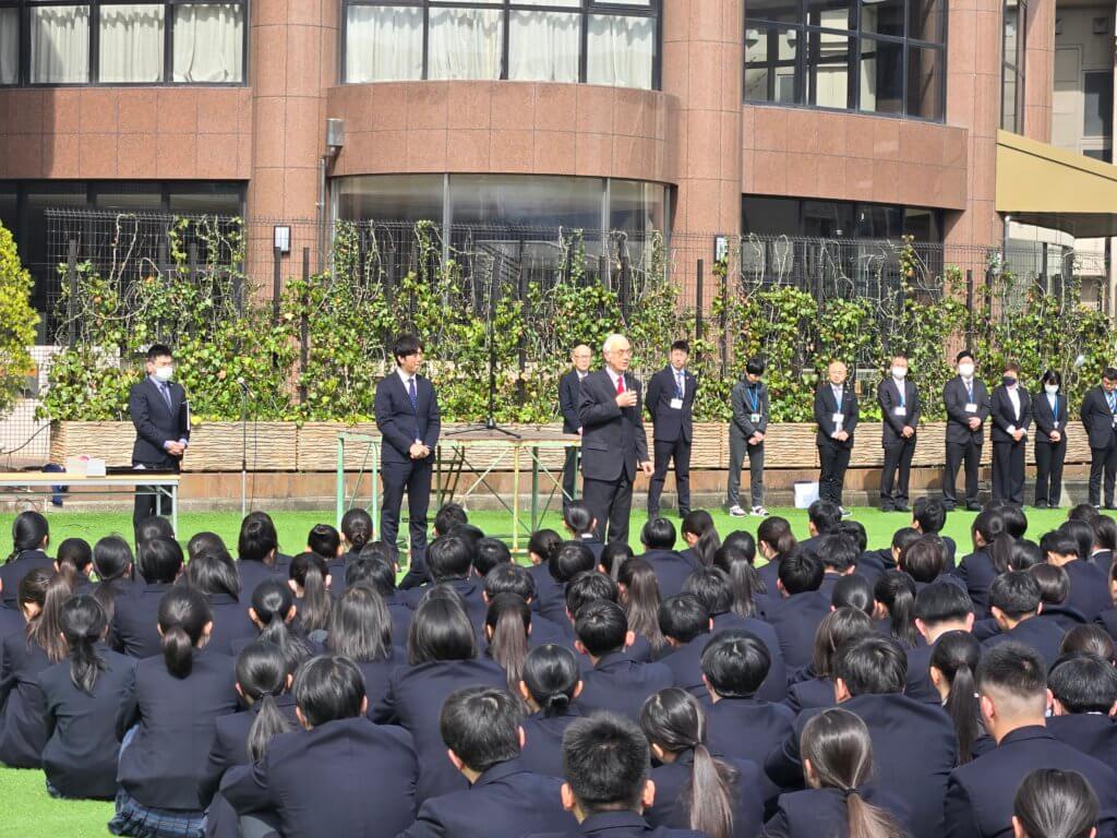 学校長からは建学の精神である「感恩」を忘れず、「夢と志」をもっていろいろなことに挑戦してほしい。